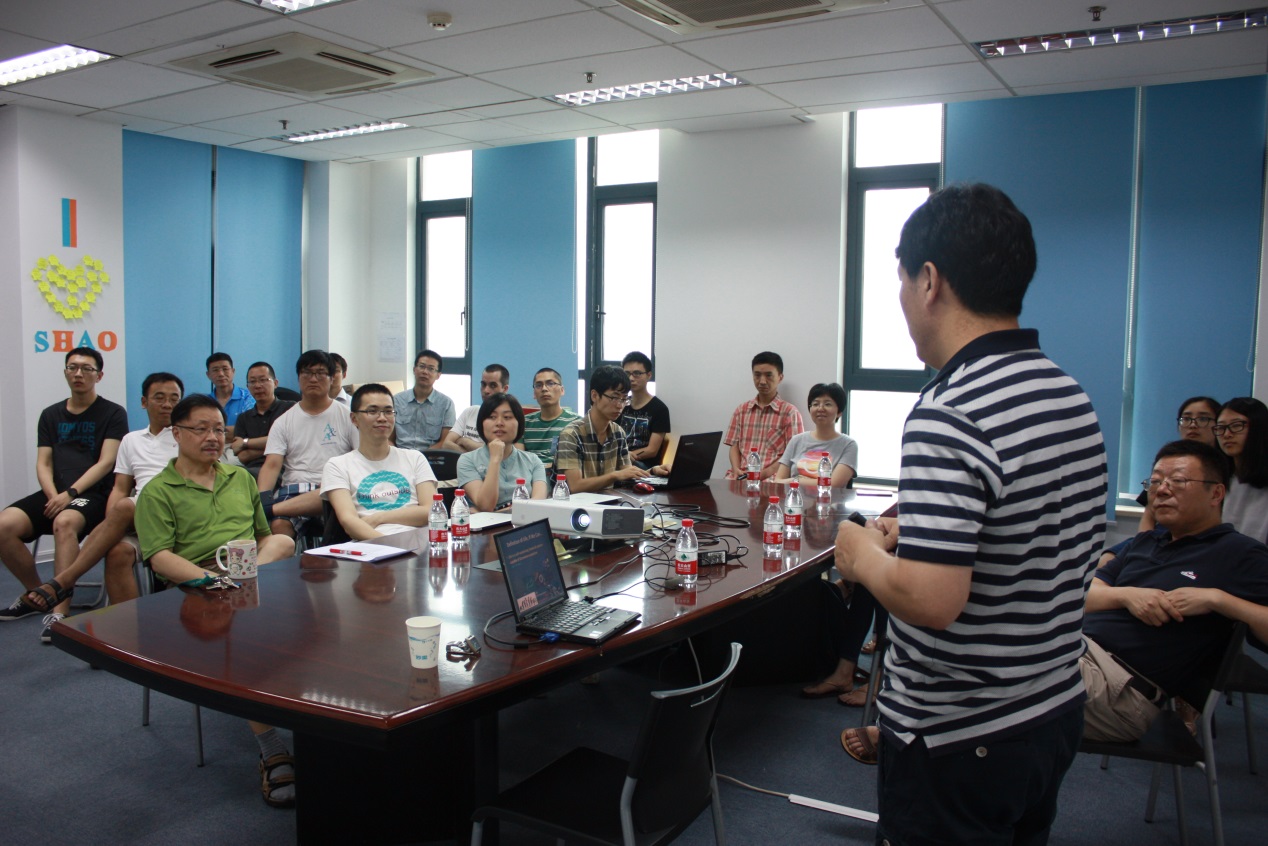 应上海天文台邀请,香港大学地球科学系李一良博士于7月5日来我台为大家作了精彩的学术和科普报告,报告题目是“天体生物学:生命在宇宙中的起源,演化和未来”。这也是天文地球动力学研究中心与中科院行星科学重点实验室联办系列学术活动之一。全台数十位科研人员和研究生饶有兴致地听取了报告,并进行了轻松而热烈的交流。